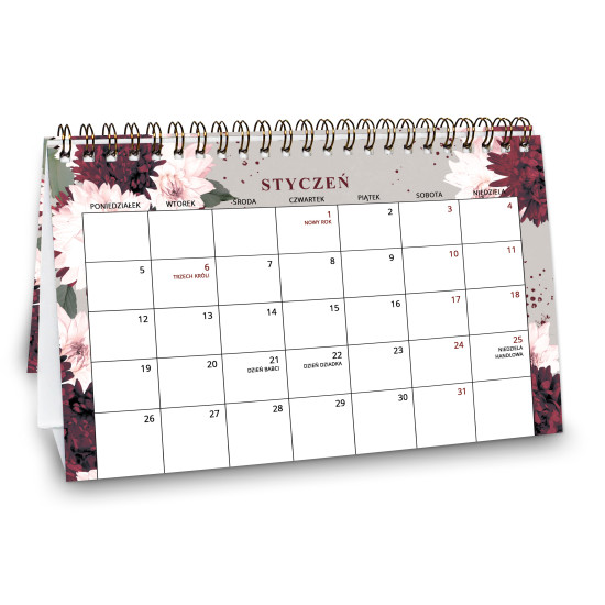 Planer Niedatowany Dzienny to wyjątkowy planer do planowania, na spirali ze wzorem Rustic Burgundy.